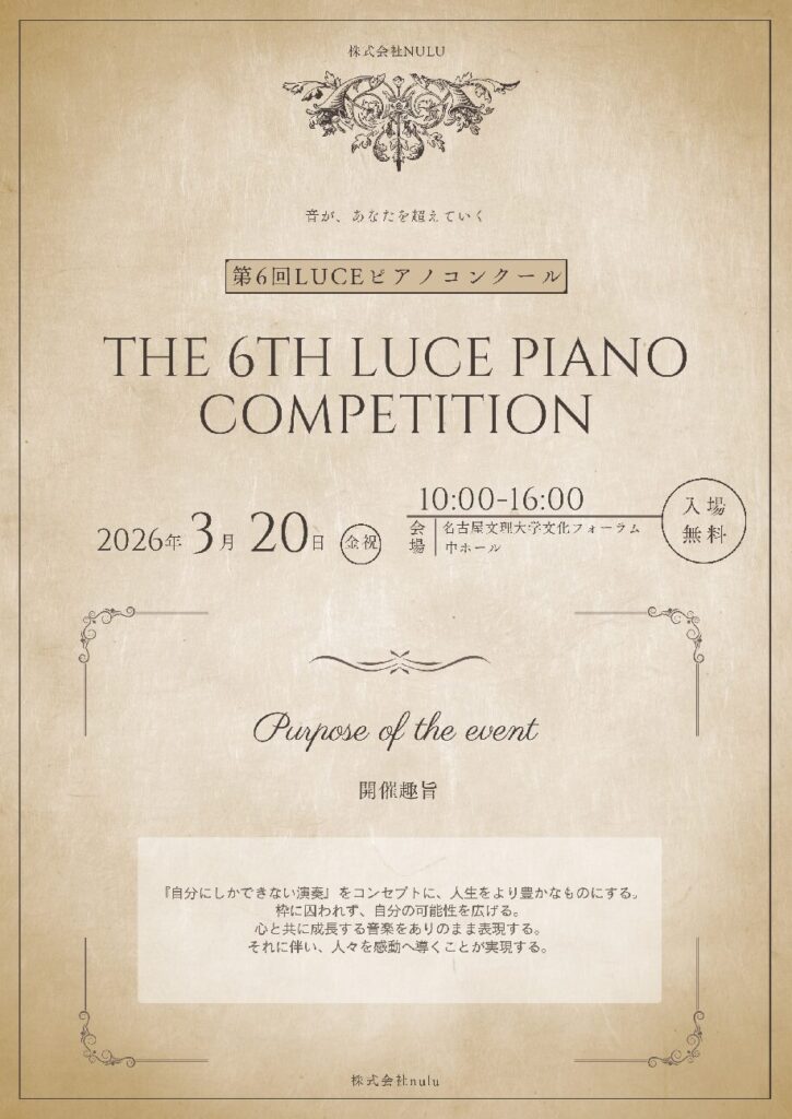 この度開催されました「第6回 luceピアノコンクール」の結果報告をいたします。